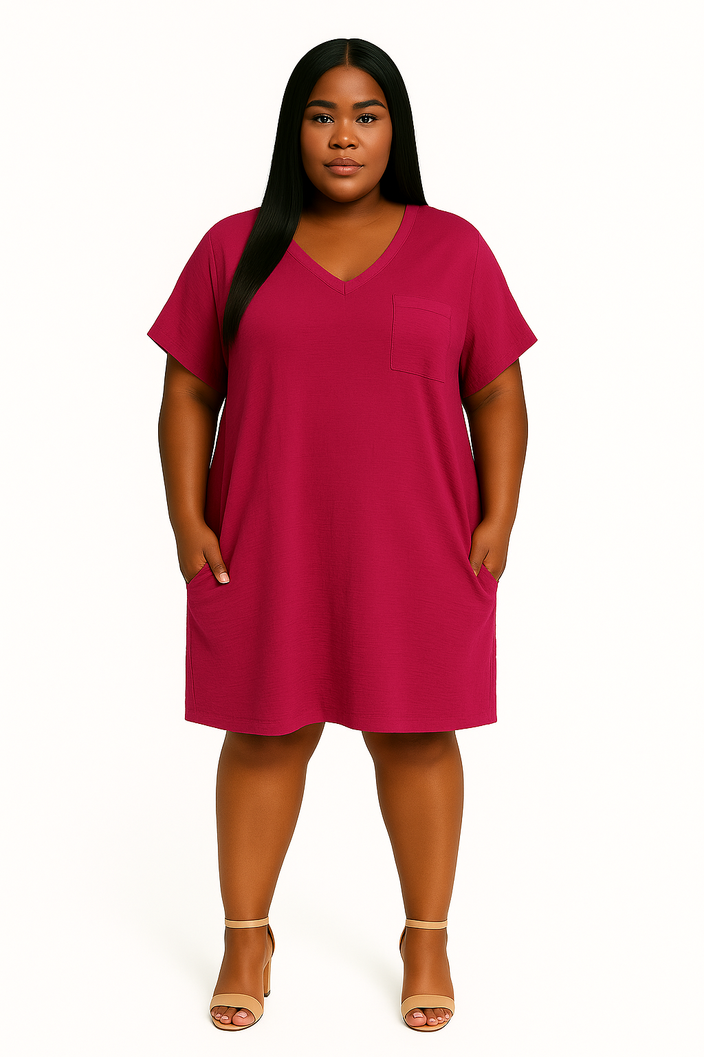 Plus size Woven Airflow v neck dress